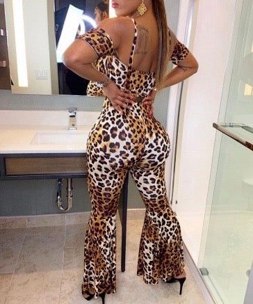 Trending Leopard Bow Tie Bra Top Flare Two Piece Jumpsuit